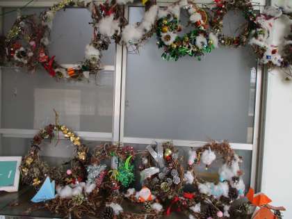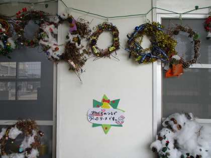 子どもたちが育てたアサガオのつるで作ったクリスマスリースが完成。教室の前に飾ってありました。どのリースも素敵です。ひとあし早くクリスマスが来たようです。
