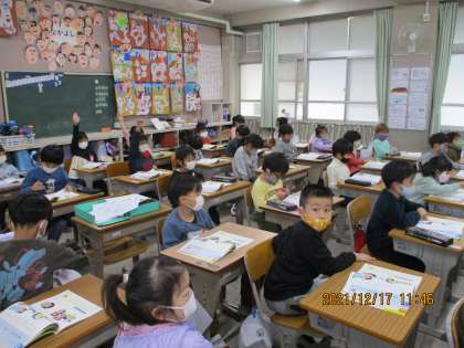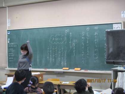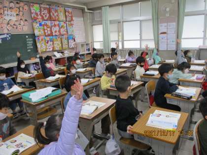 「ありがとうがいっぱい」の学習で学校でお世話になっている人について話し合いました。