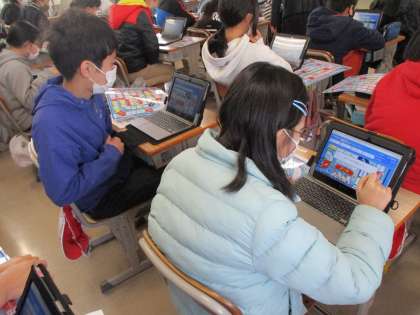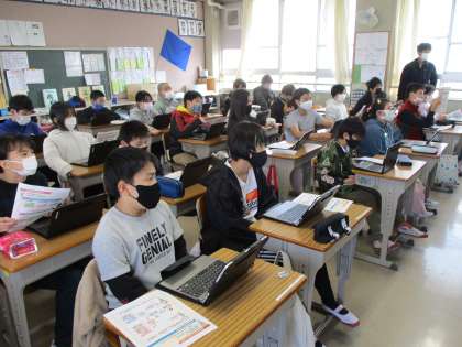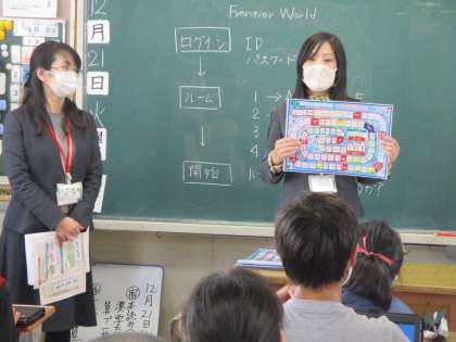 家庭科の出前授業です。金融教育の一環として「ライフシュミレーション」に取り組みました。講師の先生から為替のことを教えてもらい,そのあと「ライフシュミレーションゲーム」にチャレンジ。タブレットを使っての双六です。ゲームを通して,お金の運用について勉強できました。