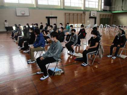 音楽の時間です。卒業式で歌う「旅立ちの日に」を体育館で練習しました。音楽の先生から「よかったよ」とほめてもらいました。本番は,もっと素敵な歌声を聞かせてくれることでしょう。卒業まであと一週間です。
