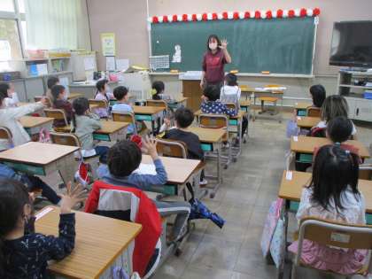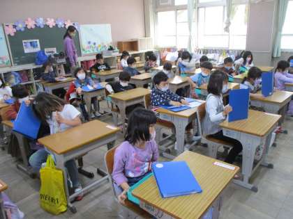 学校生活二日目。保健室の先生からおトイレの使い方,連絡ファイルの使い方,自己紹介の仕方を担任の先生から教えてもらいました。今日も楽しく学校での生活を送ることができたようです。元気に帰っていきました。
