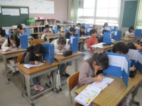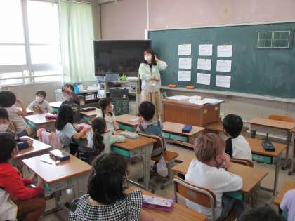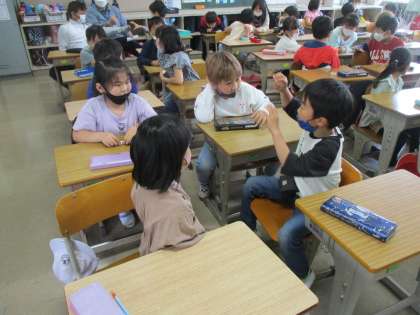 生活科の時間です。1年生との学校たんけんの準備に取り組みました。今日は,探検する教室の案内のポスターにチャレンジ。グループで相談しながら,どの教室のポスターを作るか決めました。どんな案内のポスターができるか楽しみです。学校たんけんがんばってね。