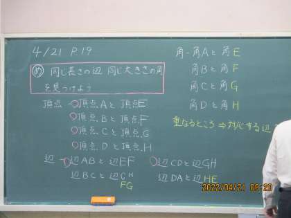 合同な図形の,長さが等しい辺や等しい角を探しました。,