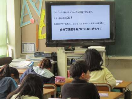 1時間目の特活の時間です。「けテぶれ」の勉強をしました。「けテぶれ」とは「計画」「テスト」「分析」「練習」。家庭学習の勉強方法です。先生の説明のあと,漢字ドリルで取り組みました。うまくできたかな?