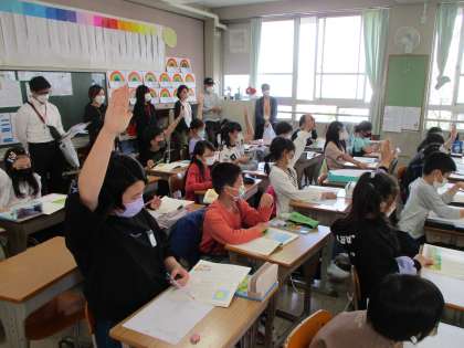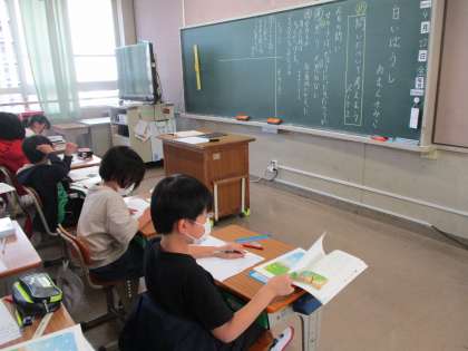 参観日は国語です。「白いぼうし」を勉強しました。めあては「問いについて考えよう。パート2」。今日の問いは「女の子は「ちよう」だったのだろうか」。初めに予想。次に物語の文章から考えました。その結果は…。しっかり取り組むところをお家の方にも見てもらいました。