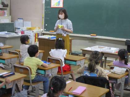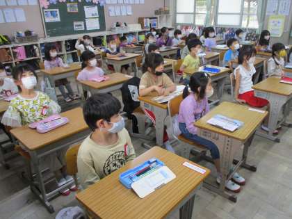 算数の時間です。「数の大きさ」の勉強をしています。ブロックを使って数の大きさを確認。先生の話をしっかり聞いて,やる気いっばいでした。そんな子どもたちの姿が素敵です。