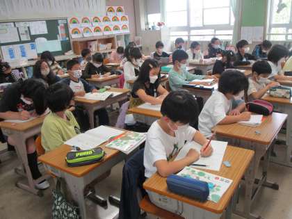 国語の時間です。「漢字辞典の使い方」を勉強しました。「音訓さくひん」「部首さくひん」など…漢字をさがすときのポイントを先生と確認。そのあと,辞典を使って漢字を調べました。うまく使えたかな?