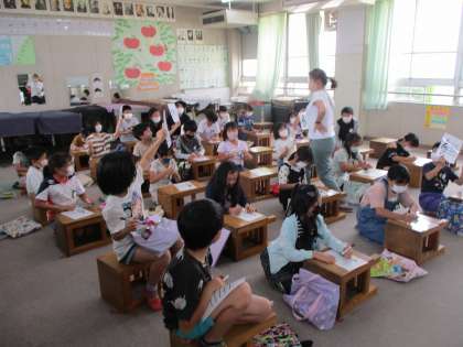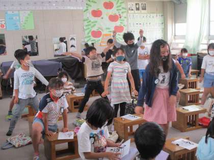音楽の時間です。最後に音楽クイズに取り組みました。マンボの音楽に合わせて,先生が出した音をカードに書き,正解すると音楽に合わせて踊るというルール。子どもたちめちゃめちゃ楽しそうでした。