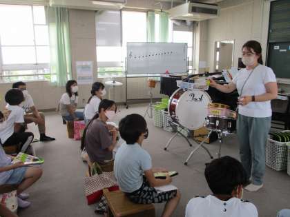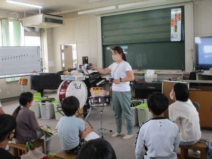 マラカスなどの打楽器の演奏の仕方を確かめました。