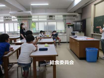 給食委員会・栽培整備委員会・図書委員会の様子です。