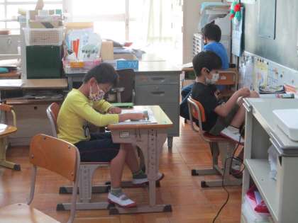 3年生は聞き取りテスト,4年生は折れ線グラフの学習をしました。