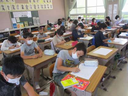 1時間目です。作文に取り組みました。テーマは「運動会」。子どもたちは,いつものように書きたいことを,書きたいように,書きたいだけ書いていました。どんな作文が書けたかな?楽しみです。