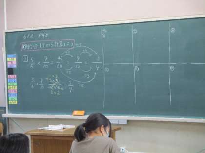 約分の仕方に着目して,分数×分数の仕方を考えました。