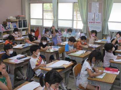 算数の時間です。「いくつといくつ」を勉強しています。今回は「6」にチャンジ。「1と5で6」「2と4で6」など…「いくつといくつで6」になるかがバッチリわかりました。やったね!