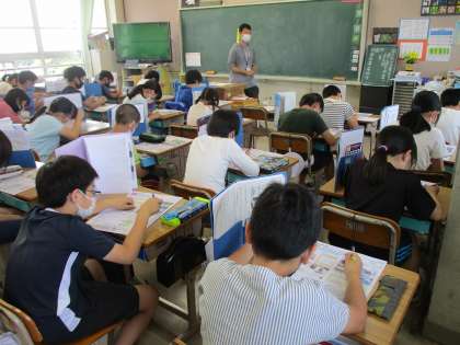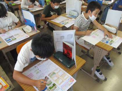 社会科の時間です。「いろいろな土地のくらし」のテストをしました。みんな,しっかりテストに取り組んでいました。バッチリできたかな?