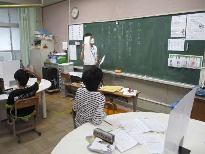 「たのしみは」の学習で短歌の作り方について説明を聞きました。