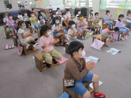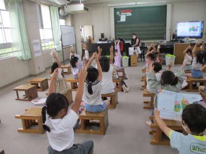 音楽の時間です。はじめに「ドレミ」あてクイズ,リズム遊びに取り組みました。先生とすごく楽しそうでした。子どもたちは音楽が好きです。