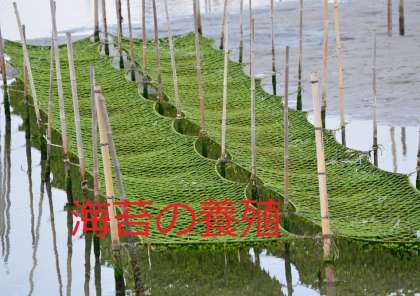日本では海苔を海苔巻きや佃煮,ふりかけの具材として広く利用されていますが,この栄養豊富な海苔を消化することができるのは,日本人だけです。古くから食用として用いられ,奈良時代の風土記や大宝令にも記述があります。江戸時代に現在おにぎりや巻きずしに使われているシート状の海苔が江戸周辺で作られるようになり,幕末には醤油で海苔を煮た海苔の佃煮が作られるようになりました。