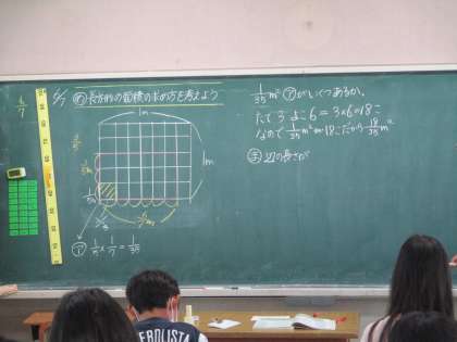 長方形や正方形の面積の公式について数が分数の場合でも式が成立するか確かめました。