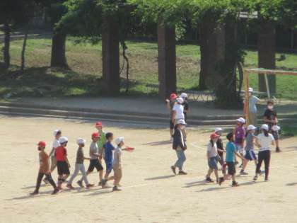 運動場でお楽しみ会をしました。