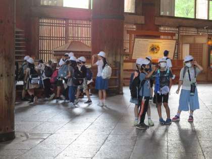 お天気も良く,5,6年生協力して楽しく活動できました。飛火野でお弁当タイム。