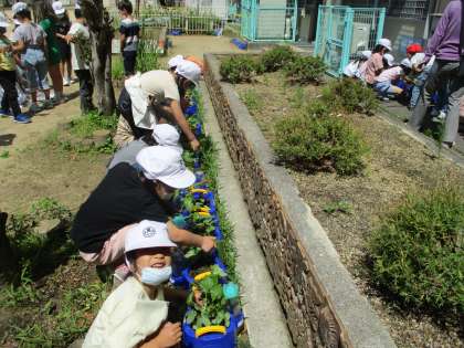 「1・2年生のみんな毎日の水やりがんばってます。」(がんばる東っ子9)