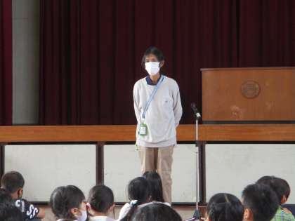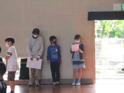 校長先生が「暑さに負けず頑張ろう」をテーマに話をしました。そのあと4年生の作文「おなかがすいたどうしよう」の紹介をしました。