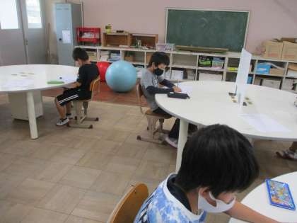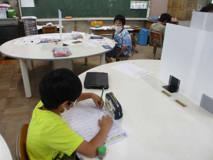 4年生は漢字50問テスト,6年生は「分数のかけ算」のテストに取り組みました。
