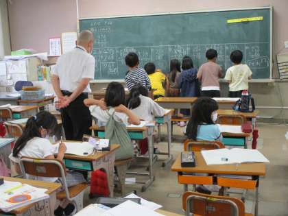 算数の時間です。「3桁のたし算,ひき算」を勉強しています。今回は「たしかめのポイント」にチャレンジ。教科書の問題をみんなで答え合わせをして復習しました。「3桁のたし算,ひき算」は,バッチリです。
