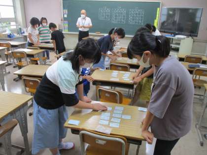 子どもたちは,自分の希望したクラブにわかれて活動を楽しんでいました。写真は「百人一首」「球技」「卓球」です。ほかに「ハンドベル」「図工」クラブがあり,次回のクラブの日に紹介します。あっという間の45分でした。