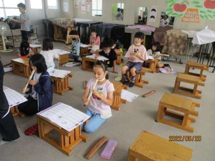 リコーダー曲「おやすみ」の楽譜に階名をつけて練習しました。