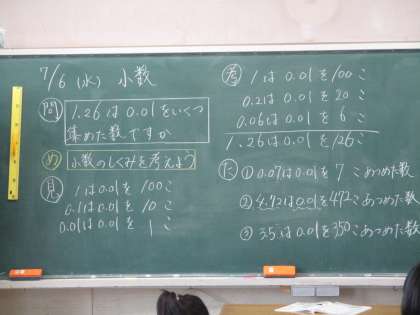 0.1や0.01の何個分ということに着目して小数について調べました。