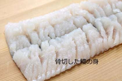 小骨が多く骨切りという下ごしらえをする必要があります。京都では祇園祭などで欠かせないものになっていますが,昔瀬戸内海から生きたまま京都に運べた魚は鱧だけだったことに由来しています。