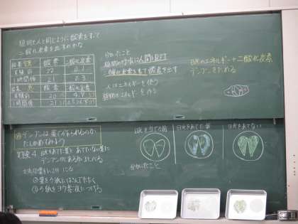 植物のどの部分でどのようにして栄養分を作るのか,実験の結果から考えました。