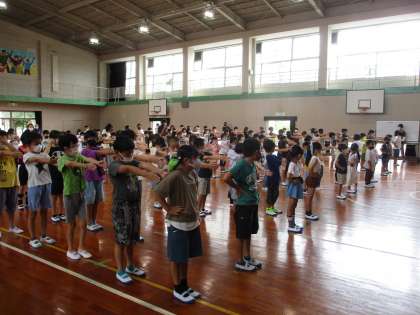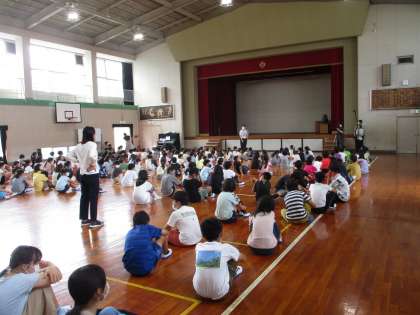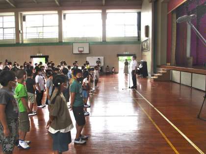 今日は1学期最後の月曜朝会でした。NHK大阪放送局が取材に来られました。