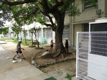 50mのメジャーを使っていろいろものの長さを測りました。