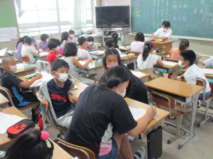 国語の時間です。「働」「氏」「健」など…はじめに新しい漢字に取り組みました。そのあと「夏」をテーマに「短歌」と「俳句」づくりにチャレンジ。楽しい夏を感じる一首,一句ができたようです。