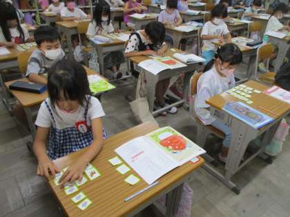 算数の時間です。「かずをせいりしよう」の勉強をしました。動物のイラストのカードを使って同じ動物で整理にチャレンジ。整理すると一番多い動物がわかるなど…整理するよさに気がついたようです。やったね。