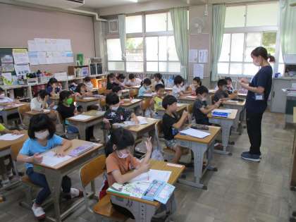 「算数の宿題の答え合わせをしました」(1年生)