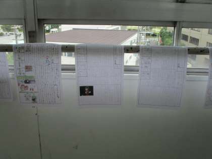 音楽の時間です。めあては「せんりつのとくちょうを感じ取ろう」。曲は「とんび」。トンビの鳴き声から曲の感じを話し合いました。廊下には,音楽新聞が掲示してあり,ベートーヴェン,滝廉太郎など…音楽家のことが紹介されていました。読んでいて面白かったです。