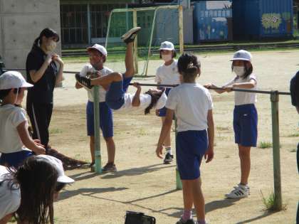 逆上がりなどの鉄棒の練習をしました。