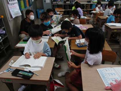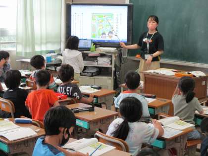 国語の時間です。「ことばでみちあんない」を勉強しています。めあては「わかりやすく案内するには,どうしたらいいか考えよう」。教科書の公園のイラストを使ってチャレンジ。わかりにくいところをみんなで確認してから,グループで「わかりやすい案内」考えました。うまく,案内できたでしょうか?