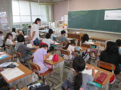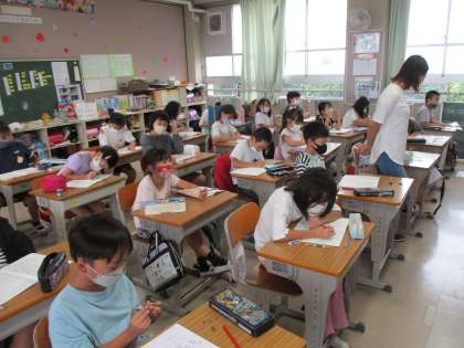 社会科の時間です。「お店ではたらく人の工夫」を勉強しています。課題は「コンビニはお客さんに来てもらうために,どんな工夫をしているか考えよう」。子どもたちは,どんな工夫を思いついたのかな?コンビニの人に,どんな工夫をしているかを聞くのもいいね。