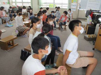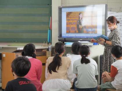 音楽の時間です。音楽室をのぞくと「金管楽器」のことを勉強していました。金管楽器の映像と音で,その楽器の特徴を先生の解説もあり,わかりやすく知ることができたようです。