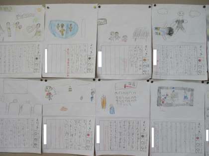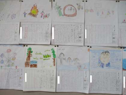 教室をのぞくと,後ろに夏休みの絵日記がはってありました。読んでみると,子どもたちは,思い出をしっかりと文章とイラストで書いていました。1学期の大きな成長を感じ,うれしかったです。