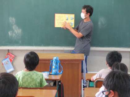 国語の時間は,読書です。担任の先生の絵本の読み聞かせでした。子どもたちは,しっかり聞いていました。5年生も絵本は大好きなようです。
