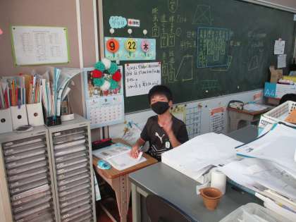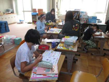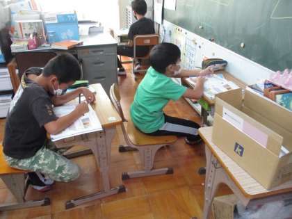 3年生は文字を書く練習,4年生は四角形の敷詰めに取り組みました。