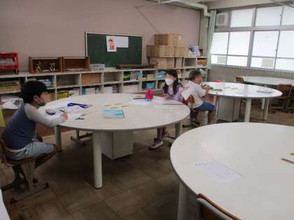 コンパスで円を描く練習をしたり,けいさんもんだいを解いたりしました。