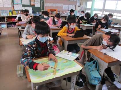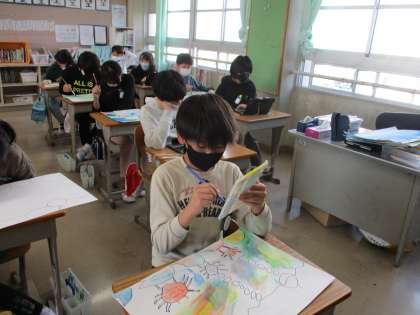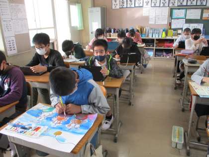 水彩画「やまなし」を仕上げていきました。出来上がった後は調べ学習をしました。