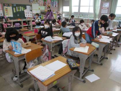 連絡を書いて,帰りの用意をしました。